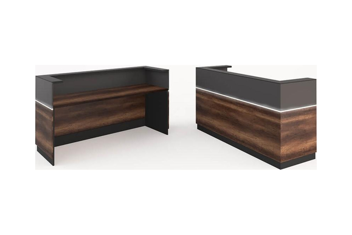 Şimdi bir de bankonun teknik detaylarına bakalım. Guest bankosunda ahşap, melamin ile kaplama işleminden geçmiştir. Güçlü bir kaplama işlemi uygulanması, yapısını sağlamlaştırmış. Daha güçlü ve dinamik olması sağlanmıştır. Alt kısmı ahşap iken, üst kısmıda farklı bir malzeme kullanılmıştır. Orta kısmından ise pleksi panel ile ayrılmıştır. Panelin içi LED ile döşenmiştir. Boyutsal olarak da banko 180cm uzunluğa sahiptir.