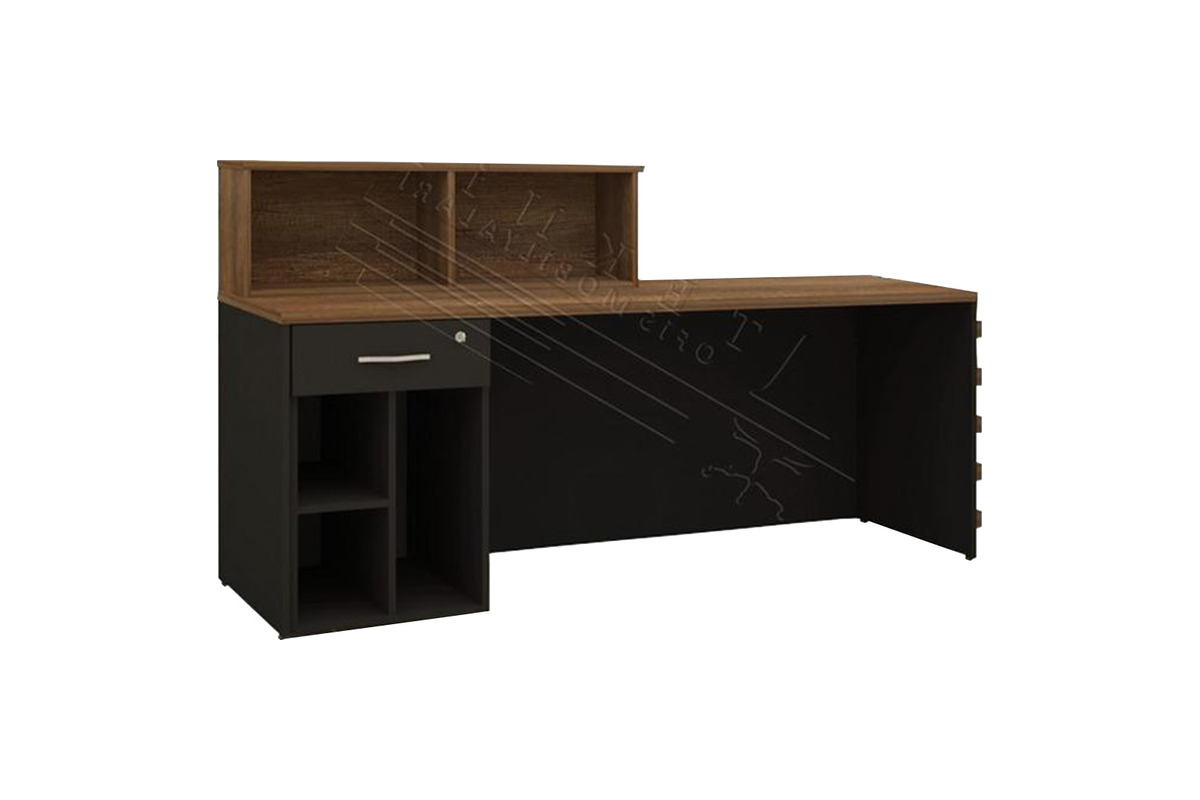 Ostin Karşılama Bankosu, hem estetik hem de işlevsel ihtiyaçları karşılamak üzere tasarlanmıştır. Bankonun personelin çalıştığı iç kısmında, bilgisayar ve evraklar için yeterli alan sağlayan geniş bir çalışma yüzeyi bulunur. Üst kısımda yer alan ve misafirlerle doğrudan etkileşimi kolaylaştıran yüksek panel, aynı zamanda evrakların gizliliğini korur. Bankonun güçlü ve sağlam duruşu, profesyonel bir ortamın ciddiyetini yansıtırken, modern tasarımıyla da çağdaş ofis dekorasyonlarına mükemmel uyum sağlar. Ostin, misafirlerinizi etkileyici bir görsel sunumla karşılamak için ideal çözümdür.