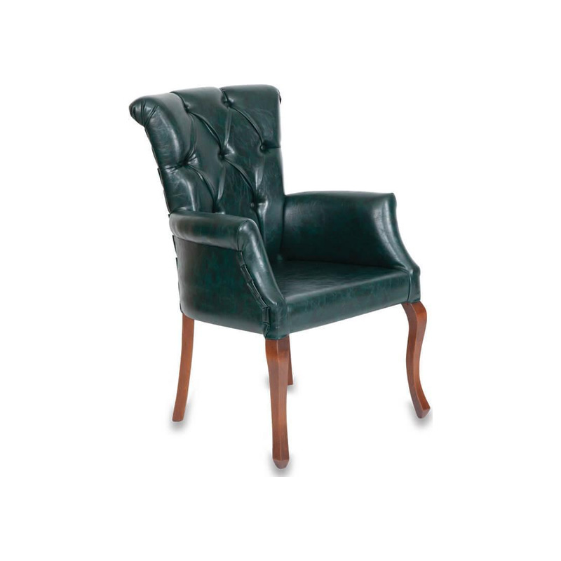 Ahşap makam sandalyesi iskelet yapısında ağırlıklı olarak ahşap malzeme kullanılmış olup normal sünger kullanılarak ve üzeri suni deri ile kaplanarak imal edilmiş olup üzeri estetik görünümde olması için düğmeli kapitone dikişlidir. Sırt kısmı yaslanma sırasında oldukça rahat ve konforlu yapı sunar. Oturma fontu misafirlerin daha rahat etmesini için geniş ve konforlu yapıdadır. Makam kanepesinin kolçakları koltuğun genel yapısına uygun normal sünger üzeri suni deri ile kaplanmıştır koltukla bütün haldedir. Makam sandalyesinin ayakları ahşap ve dört ayak olup koltuğun dengeli ve dayanıklı olması sağlanmıştır.