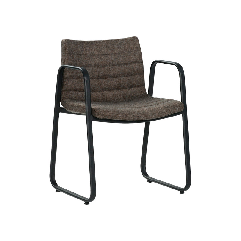 Mosa Kumaş Döşemeli Dekoratif Tekli Bekleme Koltuğu, sade ve minimalist çizgileriyle çağdaş mekanlara zarif bir dokunuş katar. Koltuğun kahverengi döşemesi, mekana sıcak ve doğal bir hava verirken, siyah metal ayakları ve kolçakları modern ve şık bir kontrast oluşturur. Sırt ve oturma kısmındaki yatay dikiş detayları, estetik bir görünüm sağlar.
