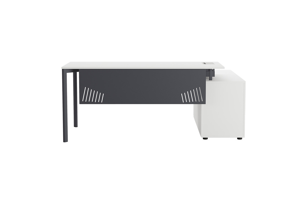 Exelis Etajerli Ofis Masası, modern tasarımı ve modüler yapısıyla ofis alanlarınıza esneklik kazandırır. Farklı boyut seçenekleri, çalışma alanınıza ve ihtiyaçlarınıza göre uyarlanabilir. Etajer kısmı sağ veya sol tarafa konumlandırılabilir ve farklı model alternatifleriyle değiştirilebilir. Masaya uygun çeşitli ön panel boyutları, hem estetik hem de fonksiyonel bir görünüm sunar. Exelis, ofis düzenine kişisel dokunuşlar eklemek isteyenler için akıllı ve şık bir çözümdür.
