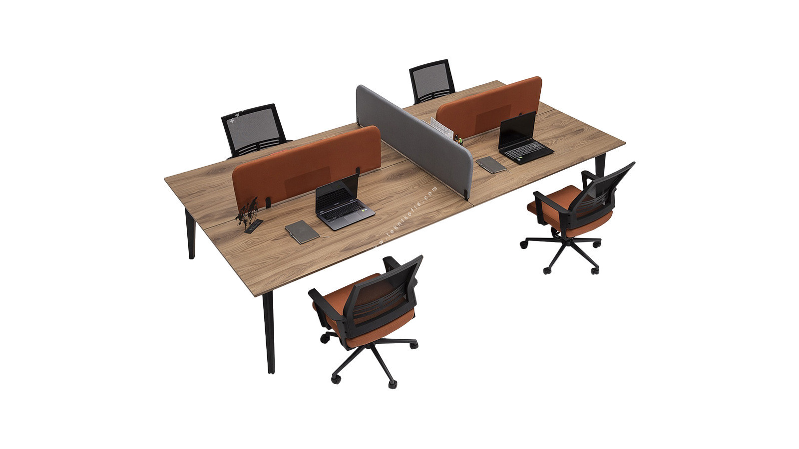 Panawork Konforlu Dörtlü Çalışma Grubu, iş yerlerinde verimli ve uyumlu bir çalışma ortamı yaratmak için özenle tasarlanmıştır. Modern renk ve malzeme uyumu, ofisinize ferah bir görünüm kazandırır. Bu dörtlü workstation, ekip üyelerinin birbirleriyle etkileşimini kolaylaştırırken, aynı zamanda kişisel çalışma verimliliğini de artırır. Panawork çalışma grubu, pratikliği ve estetiği bir araya getiren ideal bir ofis mobilyası çözümüdür.