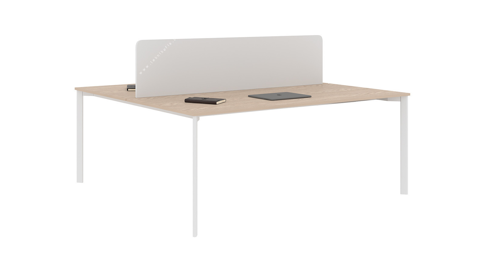 Eflorant Çalışma Grubu, modern ofis ortamları için tasarlanmış, estetik ve işlevselliği bir araya getiren özel bir mobilya parçasıdır. Bu çalışma grubu, ortak çalışma alanlarında verimliliği ve konsantrasyonu desteklemek üzere özenle üretilmiştir. Geniş çalışma yüzeyleri, açık ahşap dokusuyla doğal bir hava katarken, masanın ortasında yer alan melamin panel ayraç, kişisel alan sınırı oluşturur. Beyaz metal ayaklar, tasarıma modern bir dokunuş ve sağlamlık kazandırır.