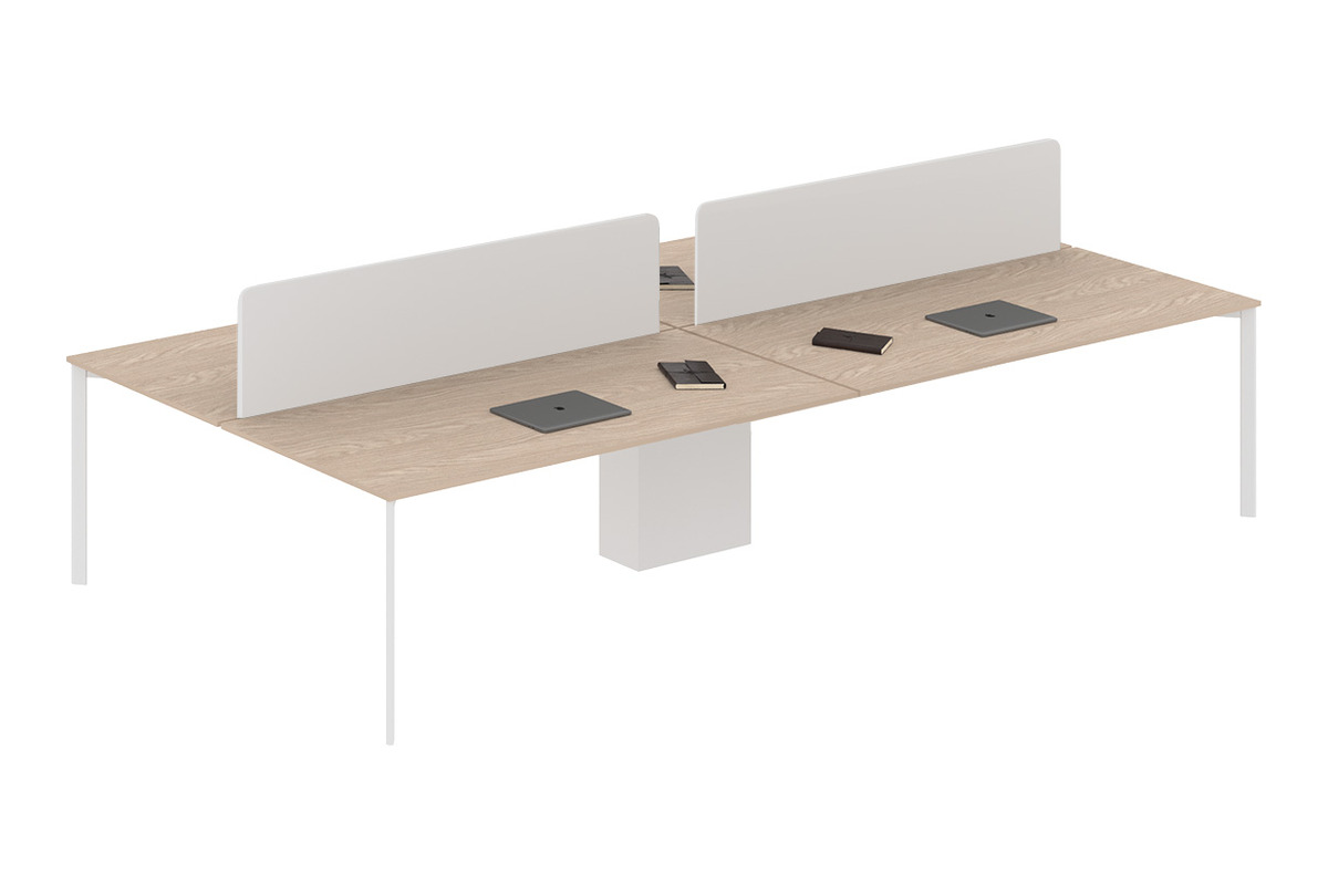 Melamin seperatörler, dışarıdan gelen dikkat dağıtıcı unsurları azaltarak çalışanların görevlerine daha iyi odaklanmasına yardımcı olur. Beyaz metal ayaklar, çalışma grubuna modern bir duruş ve sağlam bir destek verir. Yüksek kaliteli malzemelerden üretilen çalışma masası, uzun ömürlü kullanım vadederek ofisinizin iş akışını ve genel düzenini optimize etmeyi hedefler.
