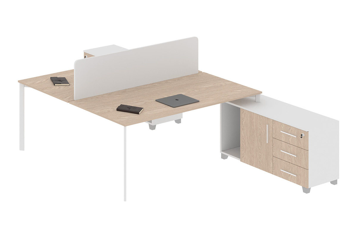 Grup içerisinde yer alan sabit konsol, kişisel eşyalar ve ofis malzemeleri için pratik depolama çözümleri sunar. Konsolun çekmeceleri ve kapalı dolap bölmeleri, düzenli bir çalışma ortamı sağlar. İki kişilk çalışma masası yalın hatları ve akılcı yapısı, her türlü ofis dekorasyonuna kolayca entegre olabilir.