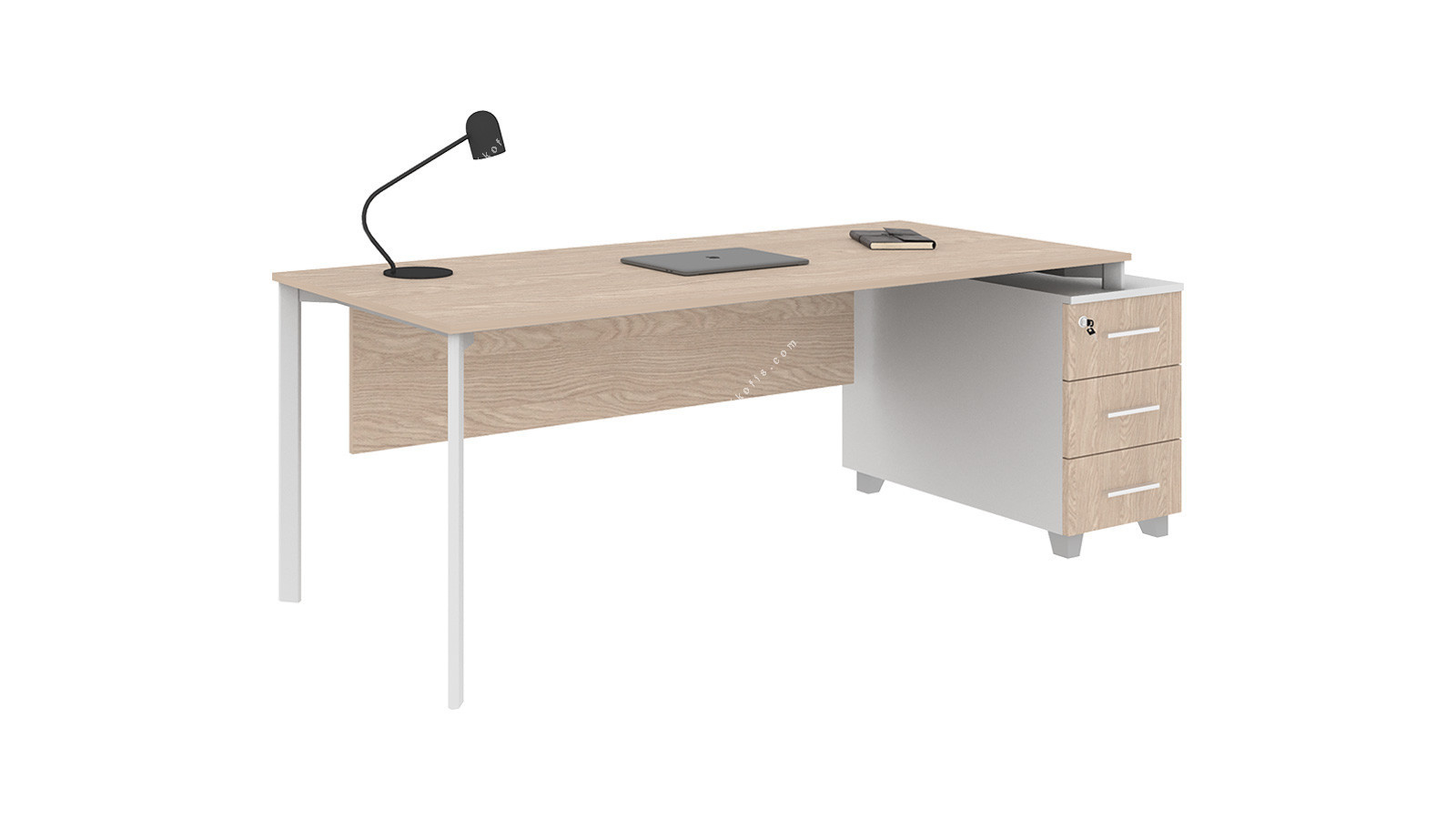 Eflorant Sağ Konsollu Metal Ayaklı Çalışma Masası, çağdaş ofis ortamları için tasarlanmış, estetik ve işlevselliği bir arada sunan özel bir mobilya parçasıdır. Bu masa, çalışma alanınızda düzeni ve verimliliği desteklemek üzere özenle üretilmiştir. Masanın geniş çalışma yüzeyi, açık ahşap dokusuyla doğal bir hava katarken, entegre sağ konsoluyla ek alan sağlar.