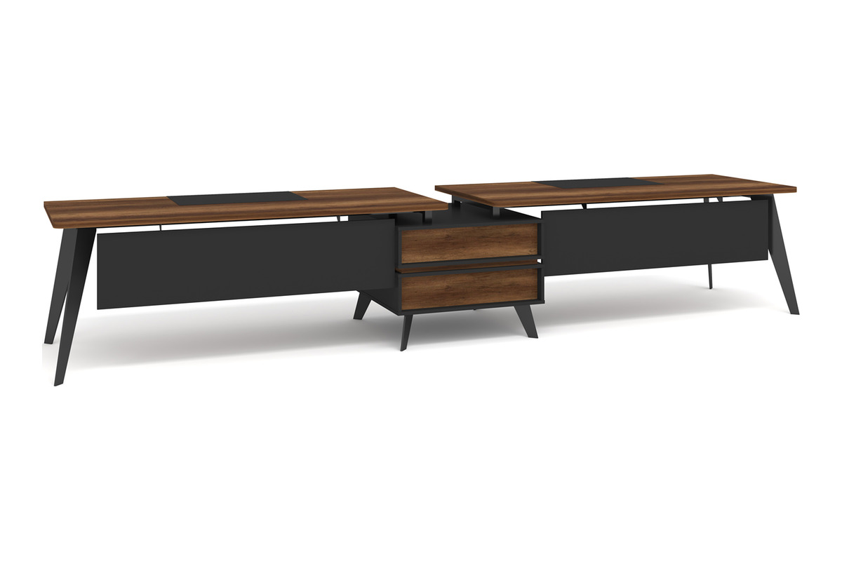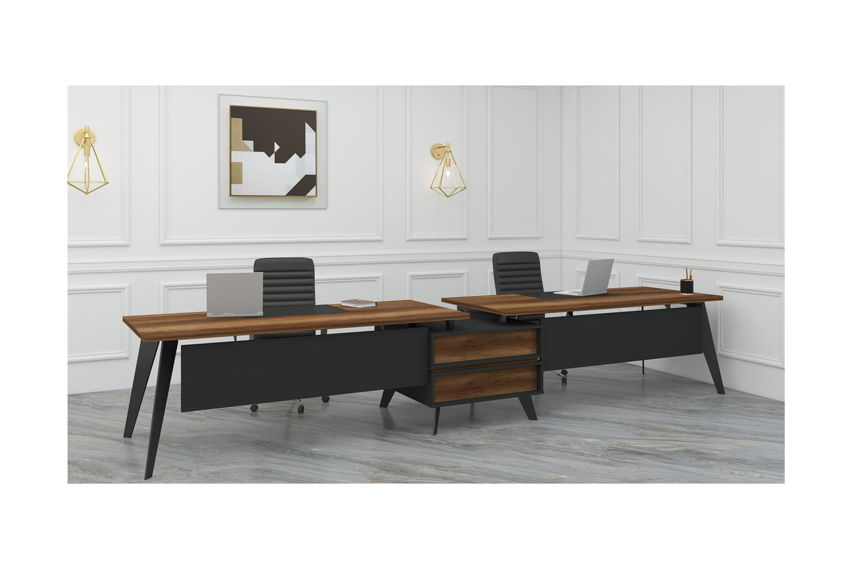 Ransevwork İkili Modern Personel Masası, iki kişinin yan yana rahatça çalışabilmesine olanak tanıyan çoklu çalışma masası tasarımına sahiptir. Masa ortasında konumlandırılan etajer bölümü, ortak kullanım için pratik bir depolama alanı sunar. Modern ofisler ve ekip çalışma alanları için ideal olan bu masa, düzenli ve verimli bir çalışma ortamı oluşturur.