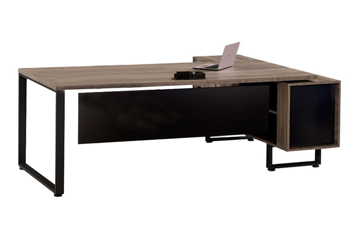 Tavi Etajerli Yönetici Masası, geniş çalışma tablası ve entegre etajer bölümüyle yöneticiler için fonksiyonel bir kullanım sunar. Metal ayaklı yapısı sağlamlık sağlarken modern tasarımı ofislere şık bir görünüm kazandırır. Günlük iş temposuna uygun konforlu bir çalışma alanı oluşturur.