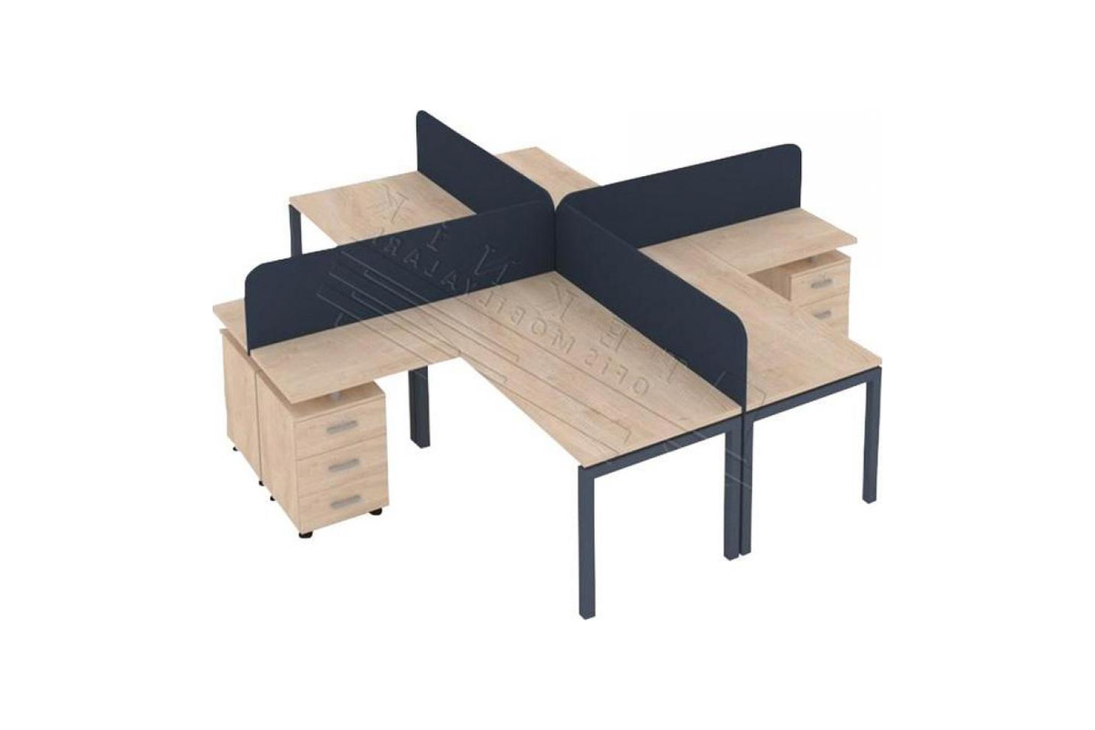 Vinna Dörtlü Workstation, dört kişilik ortak çalışma düzeni sunan etajerli yapısıyla ofislerde alanı verimli kullanmayı sağlar. Metal ayaklı sağlam konstrüksiyonu uzun ömürlü kullanım sunarken melamin seperatör paneller çalışanlar arasında düzenli ve odaklı bir çalışma ortamı oluşturur. Etajer bölümleri sayesinde depolama alanı artırılarak masa üzeri düzen korunur.