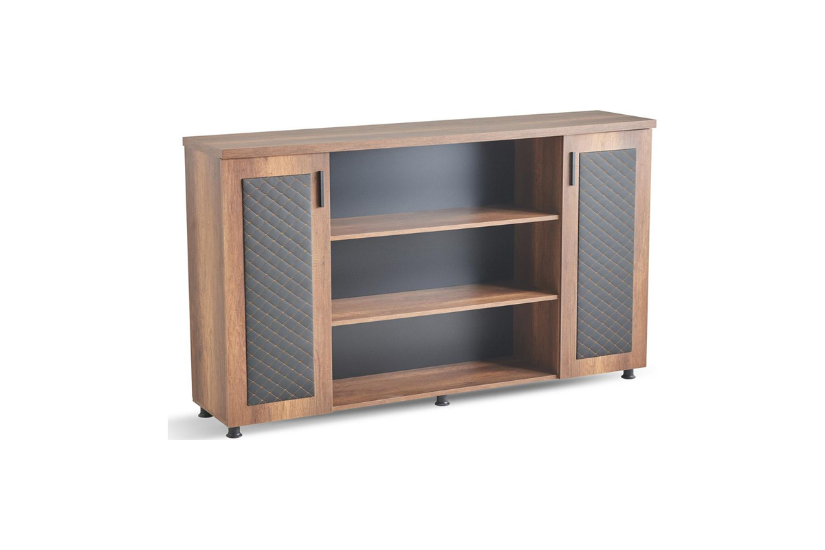 Apical Klasik Raflı Yönetici Dolabı, yönetici odalarına klasik bir estetik katan detaylı tasarımıyla dikkat çeker. Masanın ön yüzündeki nakışlı deri detaylara uyumlu panel tasarımı, dolabı yönetici takımı içinde görsel olarak dengeler. Geniş iç hacmi evrak ve ofis malzemelerinin düzenli saklanmasını sağlar.