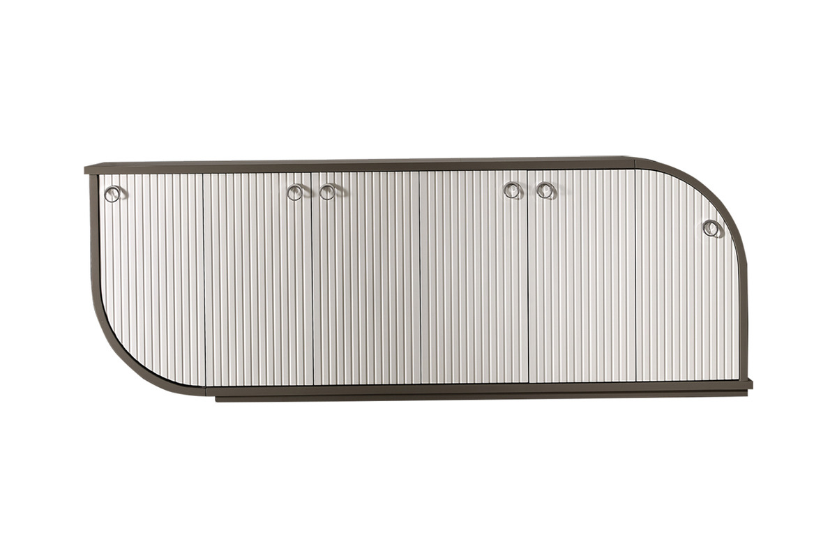 Argent Beyaz Makam Ünitesi, takımın genel estetiğini koruyarak geniş depolama alanı sunar. Evrak, dosya ve ofis malzemeleri için düzenli saklama imkanı sağlayan dolap, kapaklı bölmeleri ve lake boyası ile hem fonksiyonel hem estetik bir çözüm sunar. Beyaz ve gri renk geçişleri ve dikey desen detayları modern ofis dekoruna uyum sağlar.