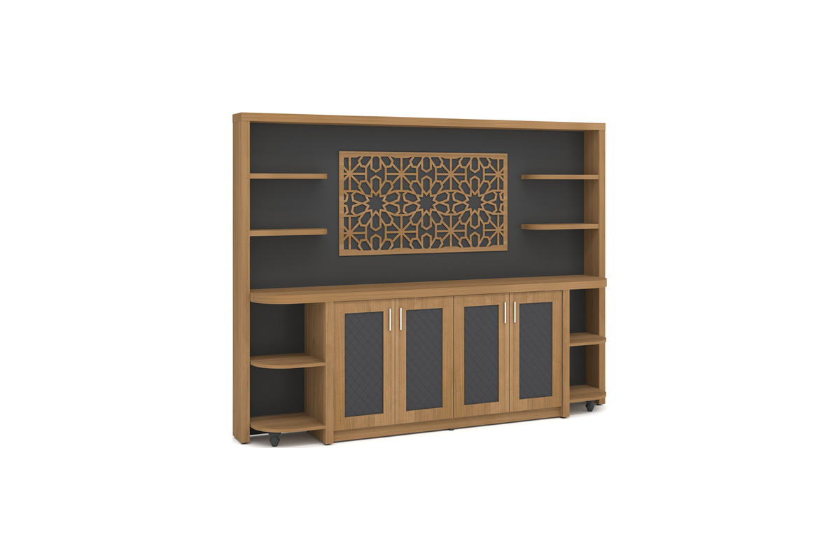 Gossip İşlemeli Yönetici Takım Arka Fonu, arka fon paneli ile dolabı tek bir bütün halinde sunarak yönetici odalarında güçlü ve prestijli bir görünüm oluşturur. Deri detaylı melamin yüzey, tasarıma sofistike bir karakter kazandırırken geniş depolama alanı fonksiyonel kullanım sağlar. Yönetici ofisleri için hem dekoratif hem düzenleyici bir çözüm sunar.