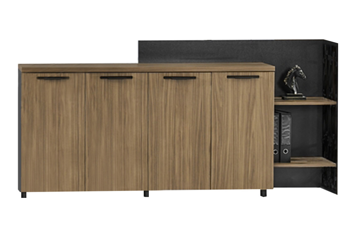 Sağlam yapısı sayesinde uzun süreli kullanıma uygun olan modern ofis dolabı, takımın diğer modülleriyle bütünlük sağlayarak estetik bir ofis ortamı oluşturur. Metal detayları sayesinde güçlü ve çağdaş bir görünüm sunan yönetici odası dolabı, fonksiyonel bir depolama çözümüdür.