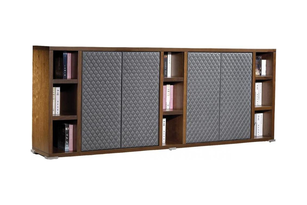 Interest Makam Alçak Konsol, makam takımının çizgisiyle uyumlu, geniş ve fonksiyonel depolama alanı sunar. Dosya, klasör, evrak veya ofis gereçleri için kapaklı bölmeler ve raf sistemi ile düzenli saklama imkanı sağlar. Ceviz kaplama ve deri detaylar, depolama ünitesini sıradan bir dolaptan çıkarıp mekana sıcaklık ve elit bir hava kazandıran prestijli bir mobilya haline getirir.
