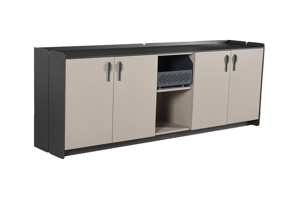 Wange Ahşap Tasarım Makam Dolabı, ofisinizdeki yönetici odasına modern bir dokunuş ve düzenli bir görünüm kazandırmak üzere tasarlanmıştır. Kaliteli melamin yüzeyi ve düz hatları, dolabın dengeli ve estetik bir duruş sergilemesini sağlar. Geniş iç hacmi ve kapalı bölmeleri, evraklarınızı, dosyalarınızı veya kişisel eşyalarınızı düzenli bir şekilde saklamanıza olanak tanır. Sağlam yapısı ve kaliteli malzemeleriyle uzun ömürlü bir kullanım vaat eder. Wange modern makam dolabı, hem işlevselliği hem de estetiği bir araya getirerek, verimli ve konforlu bir çalışma ortamına katkıda bulunur.