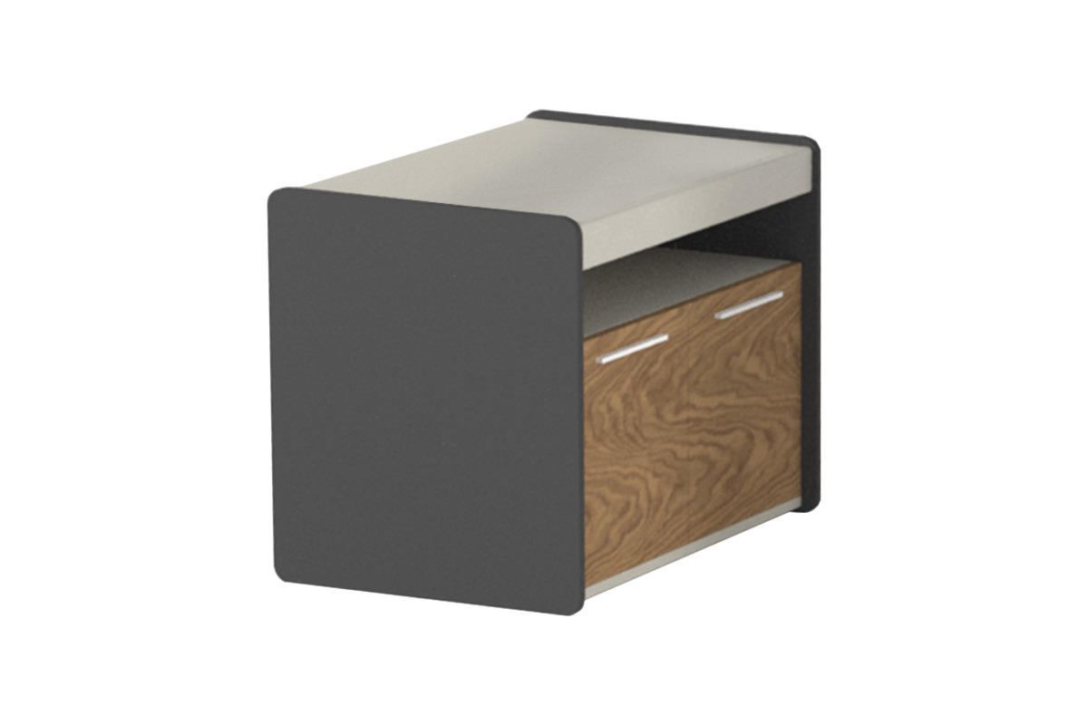 Kapaklarda kullanılan minimalist metal kulplar, tasarıma modern bir dokunuş katarken, kullanımı kolaylaştırır. Kompakt boyutları sayesinde dar alanlarda bile rahatlıkla kullanılabilir ve her türlü modern ofis dekorasyonuna uyum sağlar.