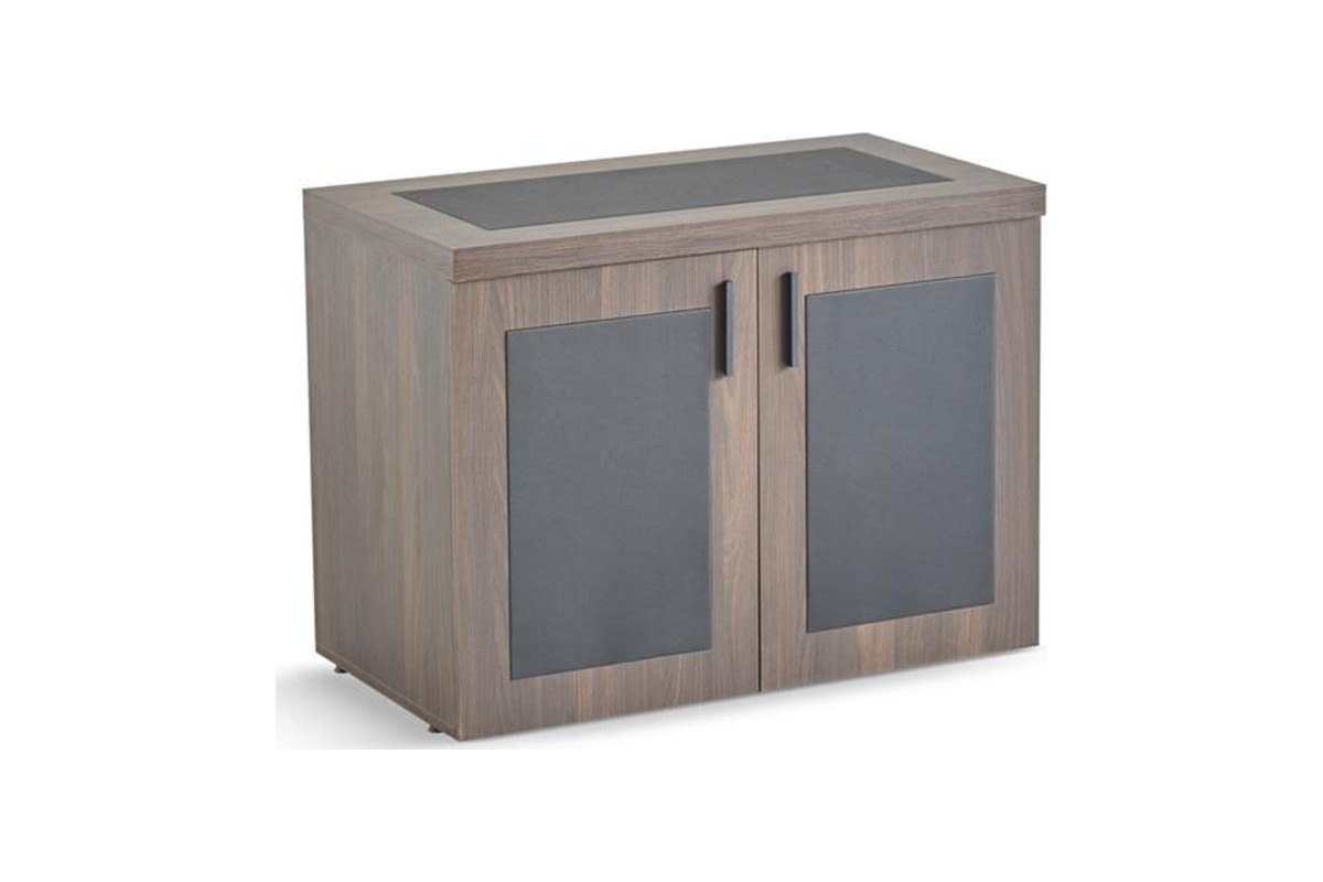 Ofwar Ahşap Makam Etajeri, masa ile tam uyumlu melamin yüzey ve deri detaylarla şık bir bütünlük sağlar. Üst yüzeyi, yazıcı, telefon ya da dekoratif objeler için kullanışlı bir alan sunarken kapalı bölmeleri dosya ve günlük ofis malzemelerini düzenli şekilde saklamanıza imkan tanır.