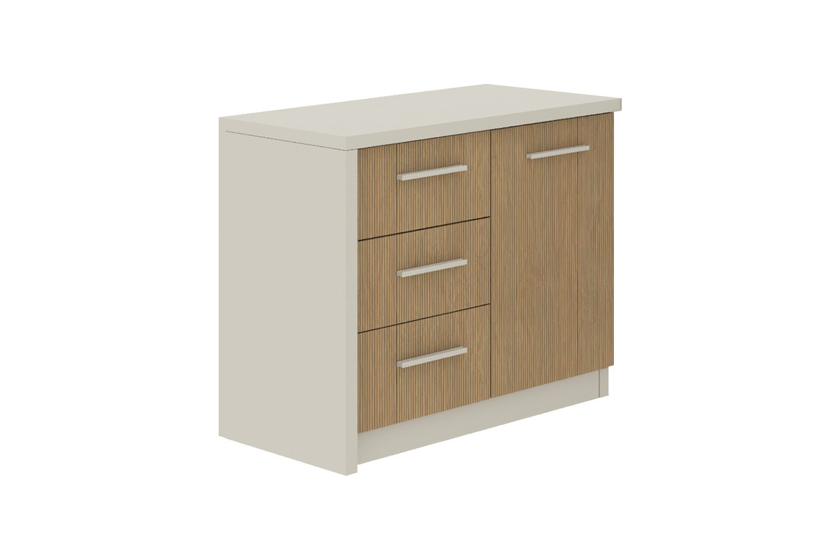 Tosas Modern Çekmeceli Etajer, modern tasarım çizgileriyle ofis ve ev ortamlarında düzeni ve estetiği bir araya getirir. Etajerin açık renkli üst tablası ve yan panelleri, mekana ferah bir hava katarken, çekmeceler ve kapaklı dolap bölümündeki çizgili ahşap desen dikkat çekici bir detay sunar. Metal kulplar, tasarıma modern bir dokunuş ekler ve kullanımı kolaylaştırır. Etajer, üç geniş çekmecesi ve yan taraftaki kapaklı bölmesiyle çeşitli eşyalarınızı düzenli bir şekilde saklamanız için yeterli alan sunar.