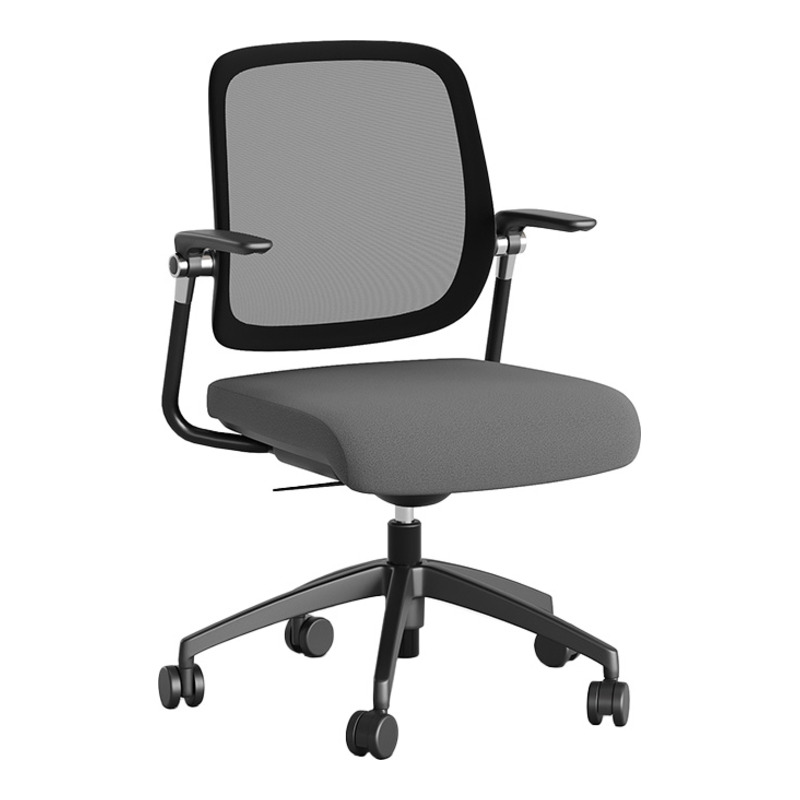 Junmo siyah çalışma koltuğu, modern ofislerin uzun süreli çalışma ihtiyaçları için tasarlanmış ergonomik ve şık bir modeldir. Koltuğun en belirgin özelliği, terlemeyi önleyen ve sürekli hava akışı sağlayan siyah, gergin file sırtlığıdır. Koltuğun kavisli kolları ve sırtı saran ince iskeleti, sade ve zarif bir estetik yaratır.