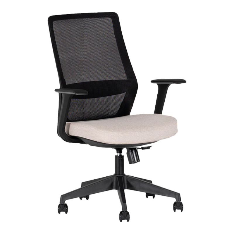 Bu toplantı koltuğu, modern ofis ambiyansına şık ve ferah bir estetik katmak üzere tasarlanmıştır. Siyah fileli sırt ve krem rengi döşemeli oturma alanı kombinasyonu, mekana modern ve sofistike bir dokunuş ekler. Siyah gövde ve tekerlekli yıldız ayakları, tasarıma güçlü ve kararlı bir duruş kazandırır. Yıldız ayaklı tekerlekli tabanı, ofis içinde kolay ve serbestçe hareket imkanı tanıyarak çalışma verimliliğini artırır. Bu sayede toplantılar sırasında veya ofis içinde esnek bir kullanım sunar.