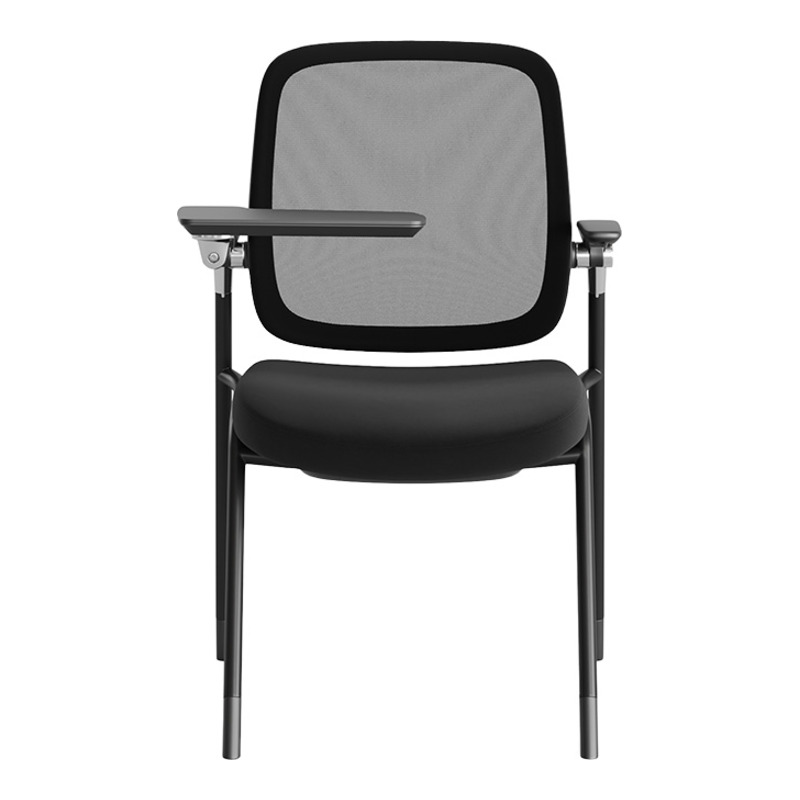 Junmo Boru Ayaklı Yazı Tablalı Konferans Koltuğu, eğitim, seminer ve çok amaçlı toplantı odaları için özel olarak tasarlanmış, tam donanımlı ve sabit bir çözümdür. Koltuğun temel yapısı, uzun süreli oturumlarda hava akışını destekleyen siyah file sırtlık ve konforlu, siyah döşemeli oturma minderi içerir. Koltuğun sabit duruşunu sağlayan dört adet ince boru metal ayağı ve kavisli kolçakları bulunmaktadır. En önemli özelliği, kolçağa entegre edilmiş ve kolayca katlanıp açılabilen geniş yazı tablasıdır. Bu fileli konferans koltuğu, dayanıklı metal iskeleti ve minimalist estetiğiyle, dinamik öğrenme ve toplantı ortamları için pratik bir çözümdür.
