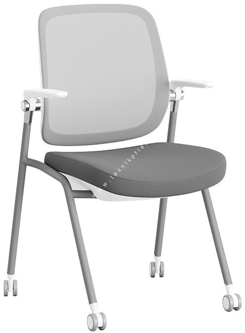 Junmo Tekerlekli Beyaz Konferans Koltuğu, minimalist tasarımı ve esnek özellikleriyle öne çıkar. Dört adet tekerlekli ayağı sayesinde, sandalyenin odanın içinde zahmetsizce hareket ettirilmesi ve toplantı düzenlerinin hızla değiştirilmesi mümkündür. Kolçakların katlanabilir olması, özellikle sandalyeler kullanılmadığında yerden tasarruf sağlamak için idealdir. Junmo, işlevsellikten ödün vermeyen, çağdaş ve hafif bir konferans çözümü arayan, özellikle açık renkli ofis dekorasyonlarına uyum sağlamak isteyen modern ofisler için mükemmel bir seçimdir.