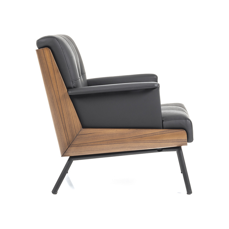 Ployer Tekli Kanepe, tek kişilik konforu modern bir estetikle birleştiren tasarımı sayesinde ofislerde hem şık hem de rahat bir oturum alanı sunar. Ahşap kaplama yan yüzeyler, berjerin karakterini güçlendirirken ofise sıcak ve doğal bir görünüm kazandırır. Bekleme alanları, yönetici odaları ve misafir köşeleri için ideal bir tamamlayıcıdır.