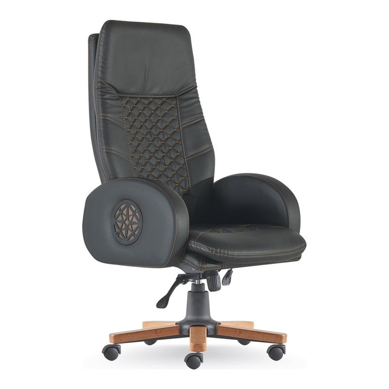 Edmont Ahşap Ayaklı Makam Koltuğu, dikiş işlemeli döşemesi ve ahşap ayak tasarımıyla modern makam odalarına prestijli bir hava katar. Geniş oturum konforu sayesinde uzun çalışma saatlerinde destek sağlayan koltuk, takımın melamin ve deri dokulu mobilyalarıyla uyumlu bir bütün oluşturur. Hem estetik hem de profesyonel duruşuyla yöneticiler için ideal bir seçimdir.