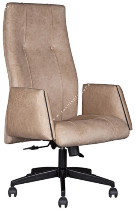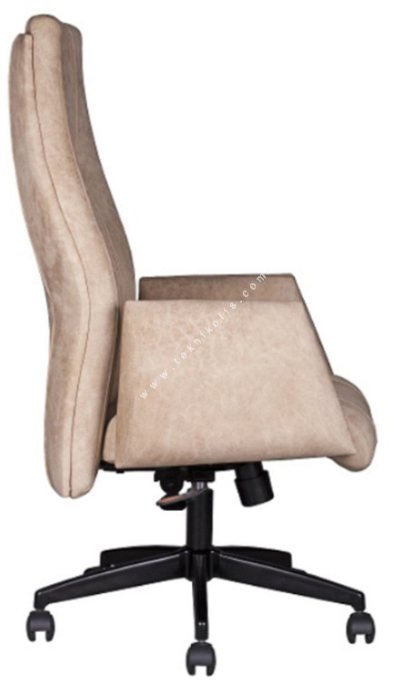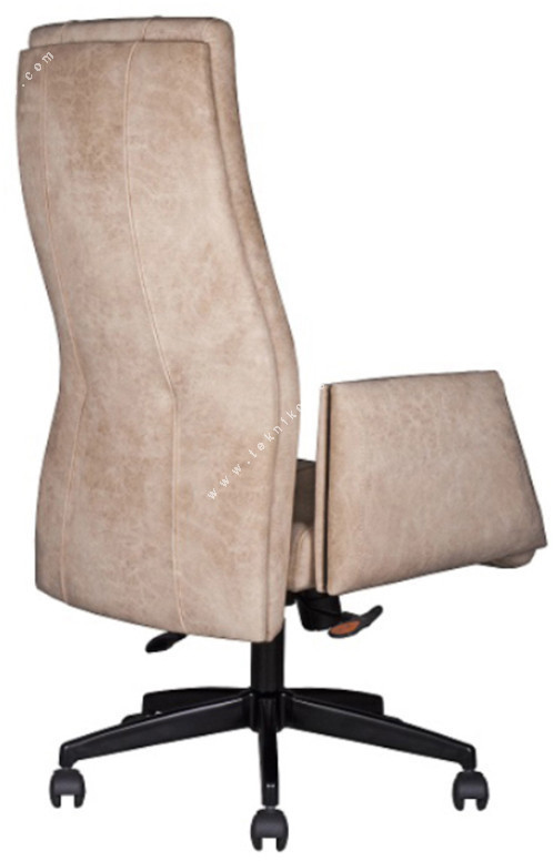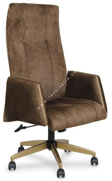 Yönetici ofis koltuğu içeriğinde poliüretan dökme sünger kullanılarak ve üzeri tercihe göre suni deri veya kumaş ile kaplanarak imal edilmektedir. Teknik donanımları ve metal aksamları sayesinde dış etkenlere karşı oldukça sağlam ve dayanıklı bir modeldir. Yönetici çalışma koltuğunun sırt kısmı kıvrımlı yapıdadır. Oturma fontu geniş yapıda tasarlanmıştır. Kolları koltukla birleşiktir. Patron koltuğunun multi tilting mekanizması koltuğun yüksekliğini ve yaylanmasını tercih edilen pozisyonda sabitlemeye olanak tanır. Ayakları metal yıldız olup zemine zarar vermeyen tekerlere sahiptir.
