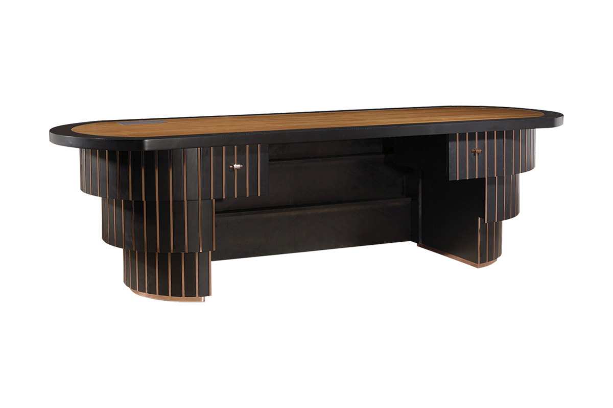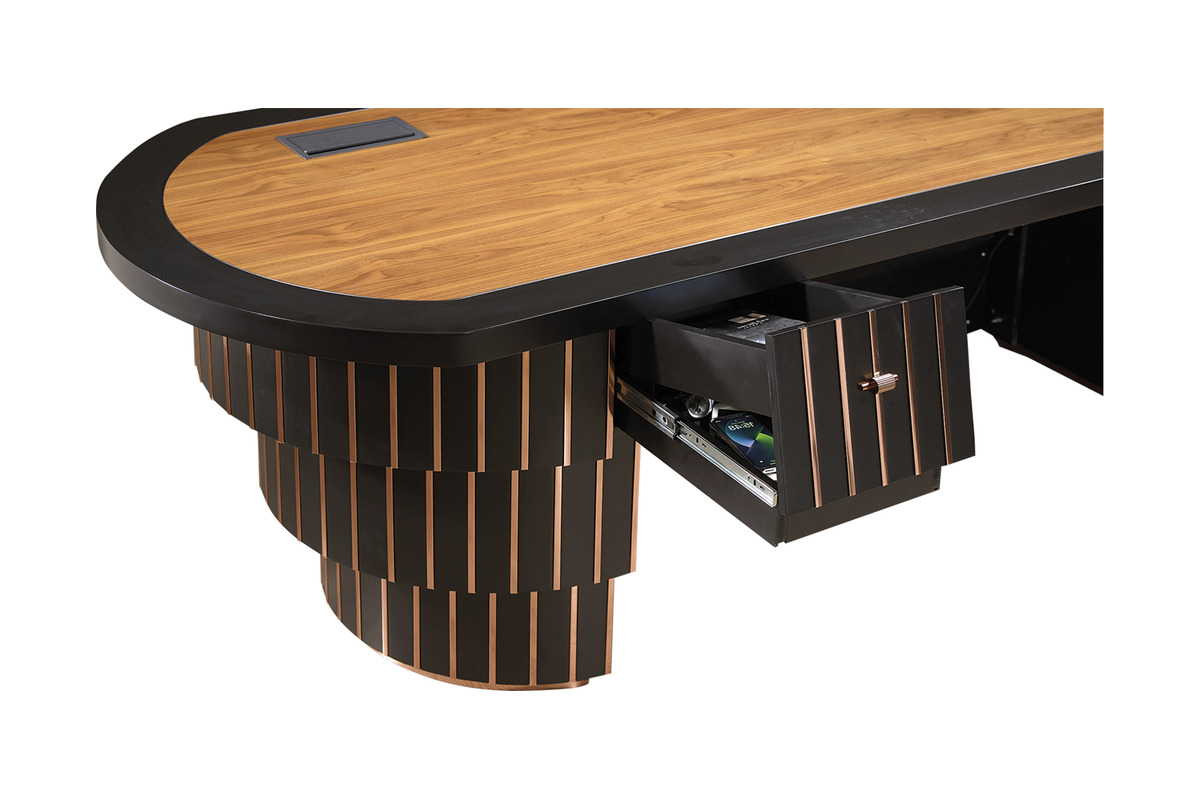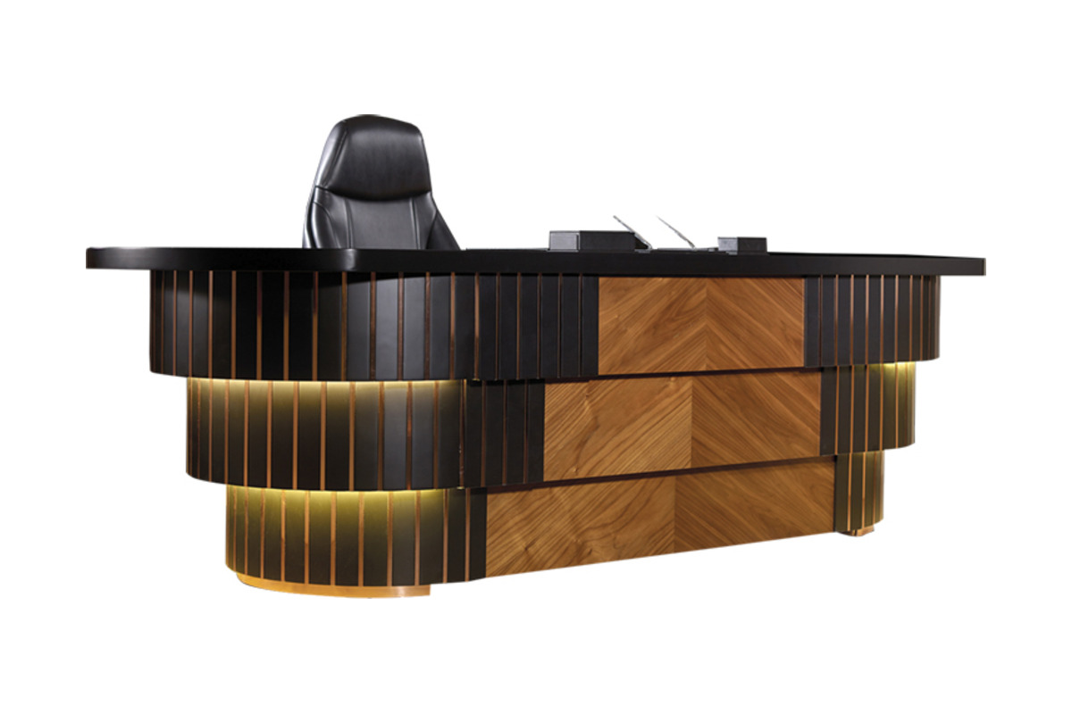 Orden Ceviz Makam Masası, ceviz kaplamasının sıcak tonları ve zarif işçiliğiyle ofisinize hem prestij hem modern çizgi kazandırır. Geniş tabla ve dengeli formu, masa üzerinde evrak, bilgisayar ve toplantı materyallerini rahatça düzenlemenizi sağlar. Masanın ceviz kaplaması, makam odasına derinlik ve asalet katarken, bütün takım ile uyumlu geometrik tasarım, ofise sofistike bir hava getirir. Bu masa, hem bireysel çalışma hem de resmi görüşmeler için ideal bir merkez parçasıdır.