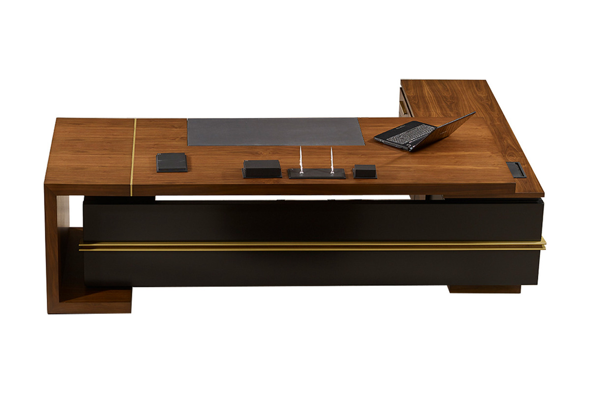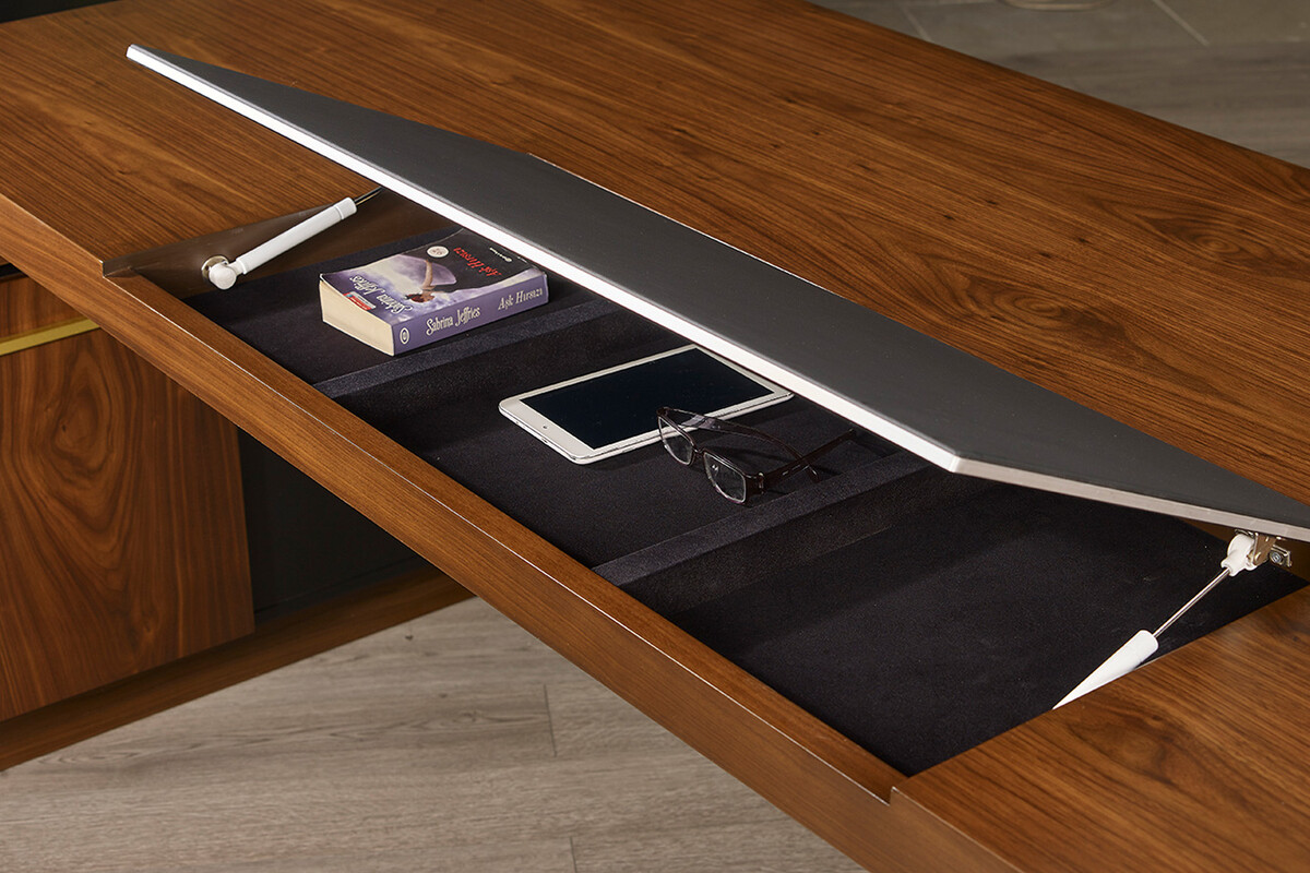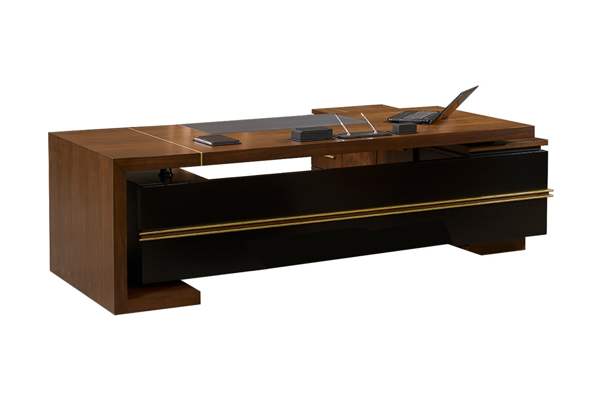 Bu lüks makam masası, yalnızca işlevsel bir çalışma yüzeyi olmakla kalmaz, aynı zamanda ofisinizin ihtişamını vurgulayan merkezi bir öğe haline gelir. Dikkat çekici detayları ve kaliteli duruşuyla, profesyonel ve etkileyici bir çalışma ortamı yaratır.