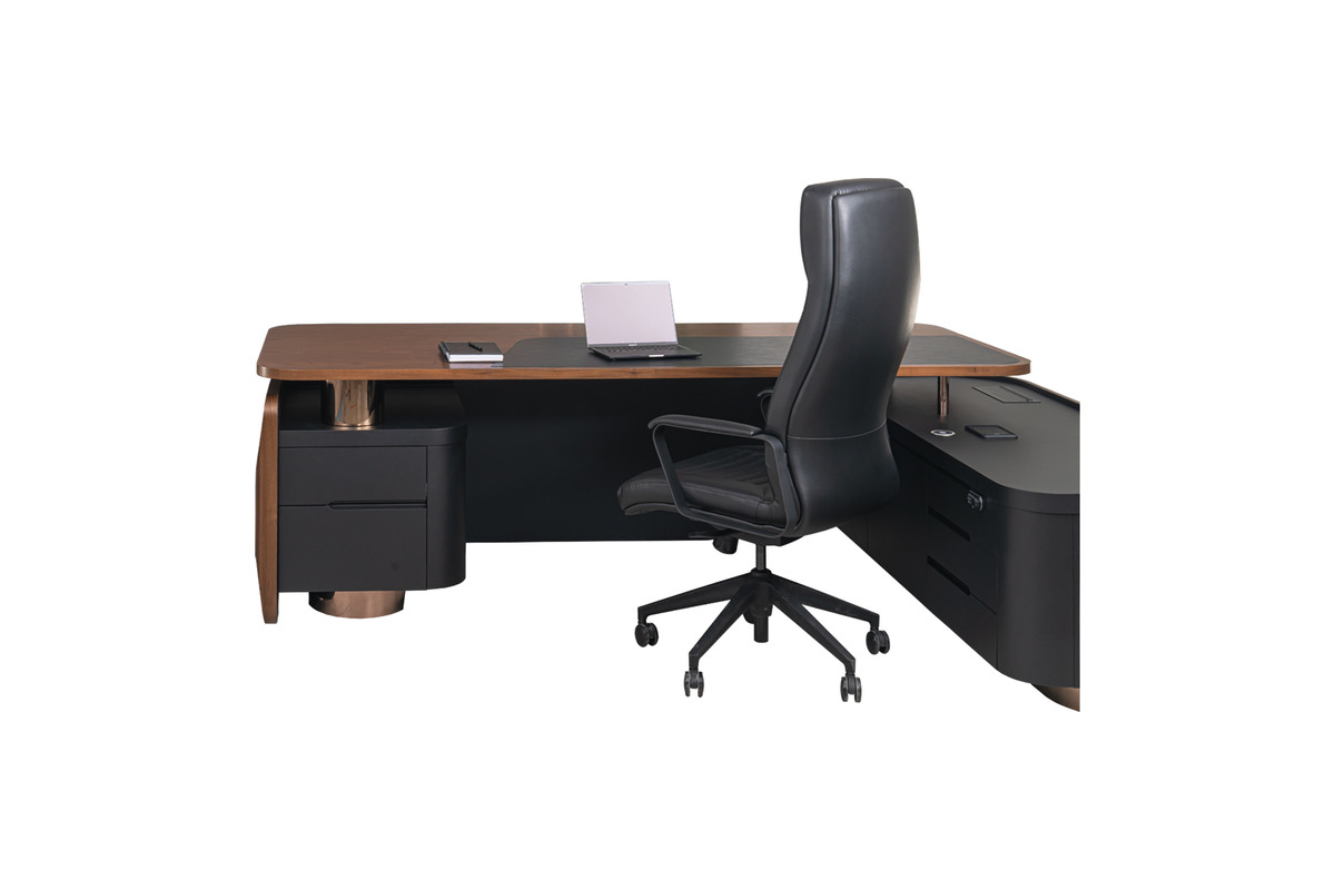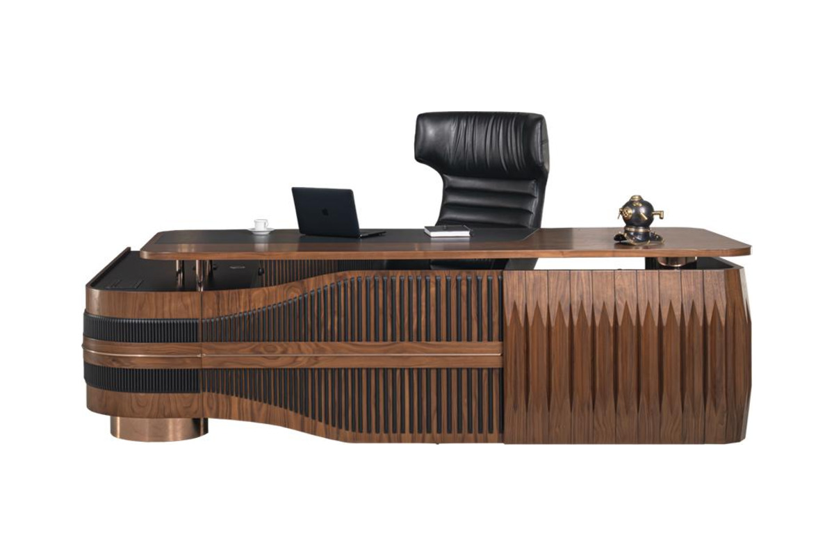 Soprano Makam Masası, el işçiliğini modern çizgilerle harmanlayan prestijli bir tasarımdır. Organik kıvrımları, ahşap dokusunun zarafeti ve güçlü duruşu ile yönetici odasında otoriteyi hissettirir. Geniş çalışma yüzeyi verimli bir alan sunarken, detaylardaki kusursuz işçilik ofisin karakterini yükseltir.
