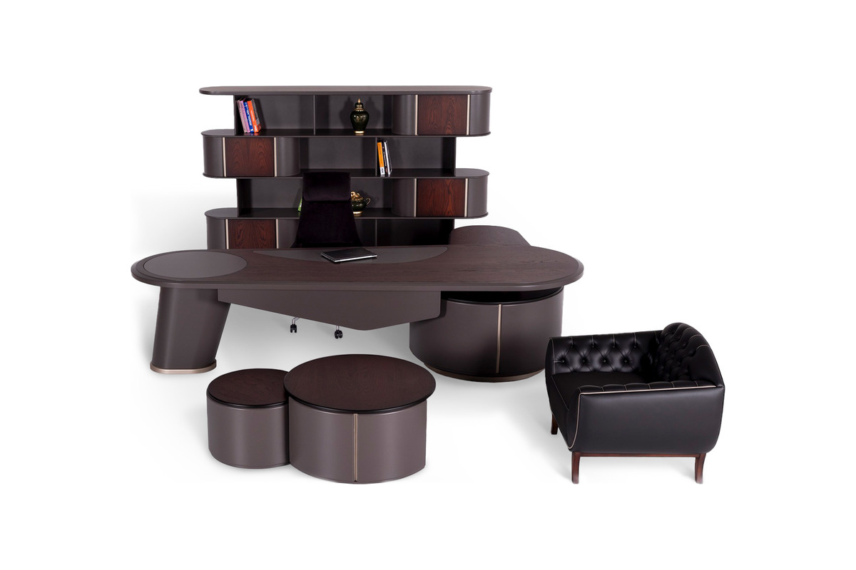 Menos Dekoratif Tasarım Makam Takımı, ofisinizdeki yönetici odasına modern bir zarafet ve profesyonel bir atmosfer katmak üzere tasarlanmıştır. Takım, geniş bir çalışma alanı sunan makam masası ve yeterli depolama alanı sağlayan uyumlu bir dolaptan oluşur. Tüm parçaların pürüzsüz yüzeyleri ve sade hatları, mekana ferahlık katarken, modern ofis dekorasyonlarıyla kusursuz bir uyum sağlar. Kaliteli malzeme seçimi ve titiz işçilikle üretilen Menos makam takımı, uzun yıllar boyunca ofisinize değer katacak dayanıklılığa sahiptir. Bu takım, hem estetiği hem de işlevselliği bir araya getirerek, yöneticiler için verimli ve konforlu bir çalışma deneyimi sunar.