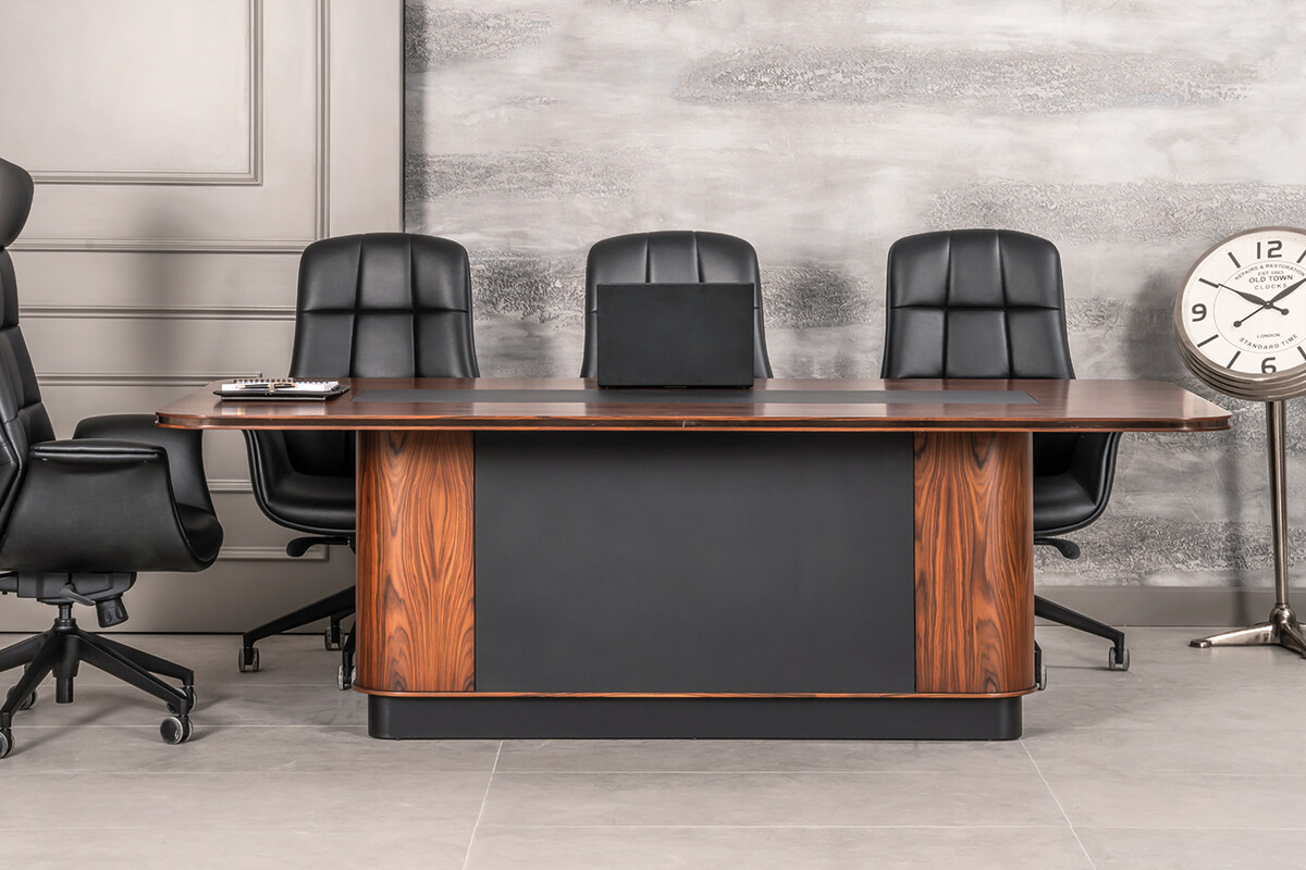 Bu toplantı masası, hem resmi görüşmeler hem de yaratıcı beyin fırtınaları için mükemmel bir zemin hazırlar. Bu toplantı masası, ofisinizin yönetim kurulu masası olarak konumlandırabileceğiniz, hem estetik hem de işlevsel bir merkez noktasıdır.