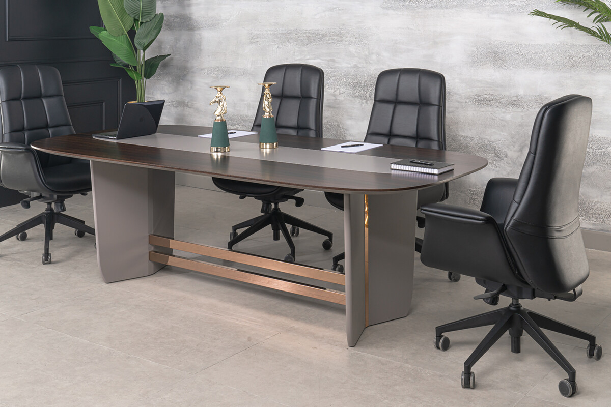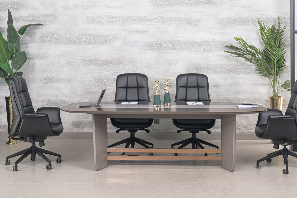Bu toplantı masası, hem resmi görüşmeler için mükemmel bir zemin hazırlar. Noona Ahşap Kaplamalı Tasarım Toplantı Masası, ofisinizin yönetim kurulu masası olarak konumlandırabileceğiniz, hem estetik hem de zarif bir toplantı masasıdır.