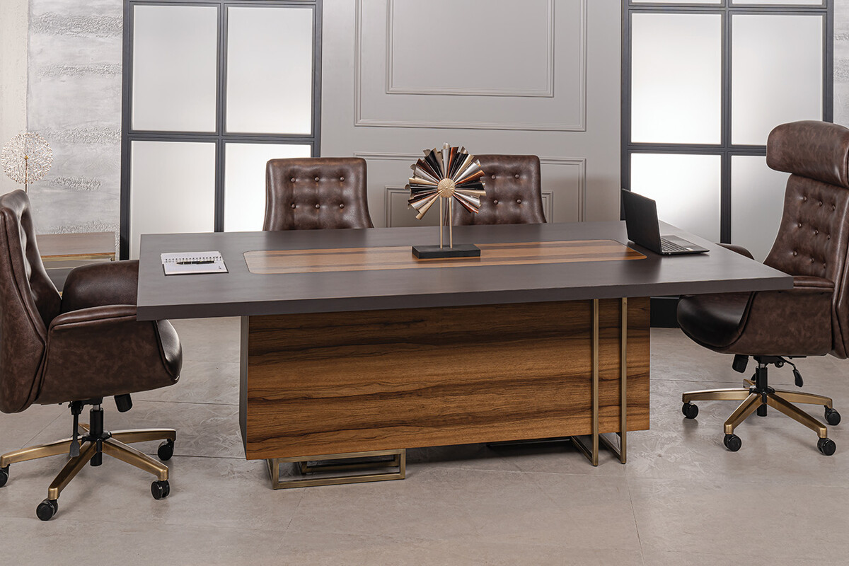 Patran Toplantı Masası, geniş yüzey alanı ve modern hatlarıyla yöneticiler için profesyonel bir toplantı ortamı sunar. Lake tabla ve ofram kaplama yüzey sıcak ve prestijli bir görünüm oluştururken, sağlam gövde yapısı uzun süreli kullanımda stabilite sağlar. Ekip toplantıları, müşteri görüşmeleri ve günlük planlamalar için ideal bir çalışma alanıdır.
