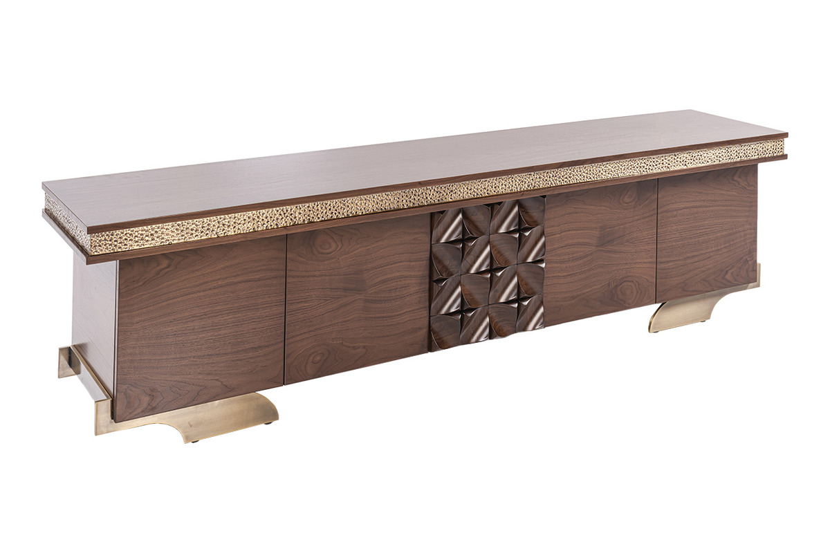 Vivanta TV Ünitesi, klasik işlemeli tasarımı ve geniş yüzeyiyle makam odalarına zarif bir medya çözümü sunar. Dekoratif ve fonksiyonel bir parça olarak öne çıkar.