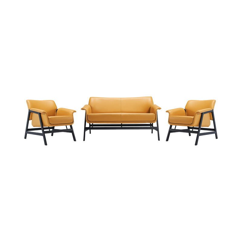 Apros Tasarım Kanepe Takımı, ofisinizin bekleme, lobi veya dinlenme alanları için zarif ve göz alıcı bir çözüm sunar. Takım, bir adet iki kişilik kanepe ve iki adet tekli kanepeden oluşur, bu da modüler bir düzenleme esnekliği sağlar. Koltukların kavisli ve kalın dolgulu tasarım, üst düzey bir oturma konforu ve dinamik bir estetik sunar. Kanepelerin çevresini saran metal iskelet, modern ve endüstriyel bir dokunuş katarak, takımın genel şıklığını ve sağlamlığını pekiştirir.