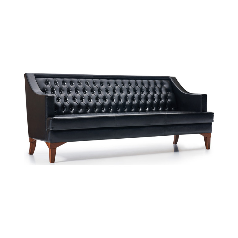 Blacktone Deri Döşemeli Kapitoneli Ahşap Ayak Üçlü Kanepe