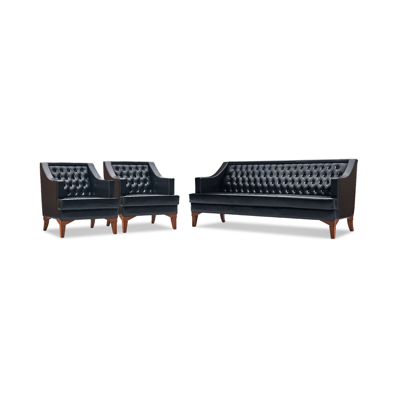 Blacktone Kapitoneli Kanepe Takımı, şirketinizin bekleme alanlarına, yönetici ofislerine veya lobiye güçlü ve karakterli bir dokunuş katmak üzere tasarlanmıştır. Bu takım, üçlü kanepe ve tekli koltuklardan oluşur, her bir parça derin kapitone işçiliğiyle klasik bir zarafet sergiler. Yüksek kaliteli deri döşeme, uzun süreli oturumlarda bile üstün konfor sunarken, koyu ahşap kolçaklar ve ayaklar tasarıma sağlamlık ve geleneksel bir hava katar.