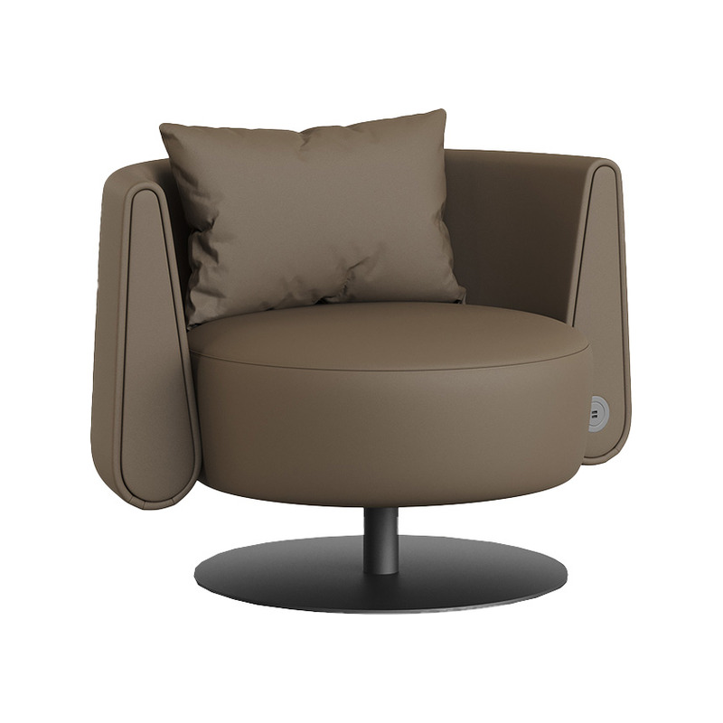 Foreno Flanş Döner Ayaklı Tekli Kanepe, modern ve minimalist çizgileriyle çağdaş mekanlara özgün bir estetik katar. Kanepenin kahverengi tonları, mekana sıcak ve davetkar bir hava verirken, yuvarlak hatlı formu yumuşak ve zarif bir görünüm sunar. Siyah metal flanş ayağı, tasarıma modern ve güçlü bir dokunuş katarak genel estetiği tamamlar. Sağlam flanş ayak yapısı, kanepenin dayanıklılığını ve stabilitesini artırır.