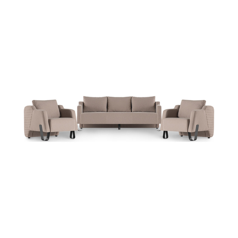 Inked Kanepe Takımı, yönetici ofislerinde konforu modern bir zarafetle sunar. Tekli kanepelerin yan panellerinde kullanılan yatay detaylar ve dışa doğru açılan asimetrik kol yapısı, serinin karakteristik tasarım dilini vurgular. Gövdeyi yerden yükselten özgün metal ayak formu, takıma hem görsel bir hafiflik katar. Geniş oturum alanı ve dolgun minderleriyle Inked, resmi toplantıları keyifli bir sohbete dönüştürecek üst düzey bir konfor vaat eder.