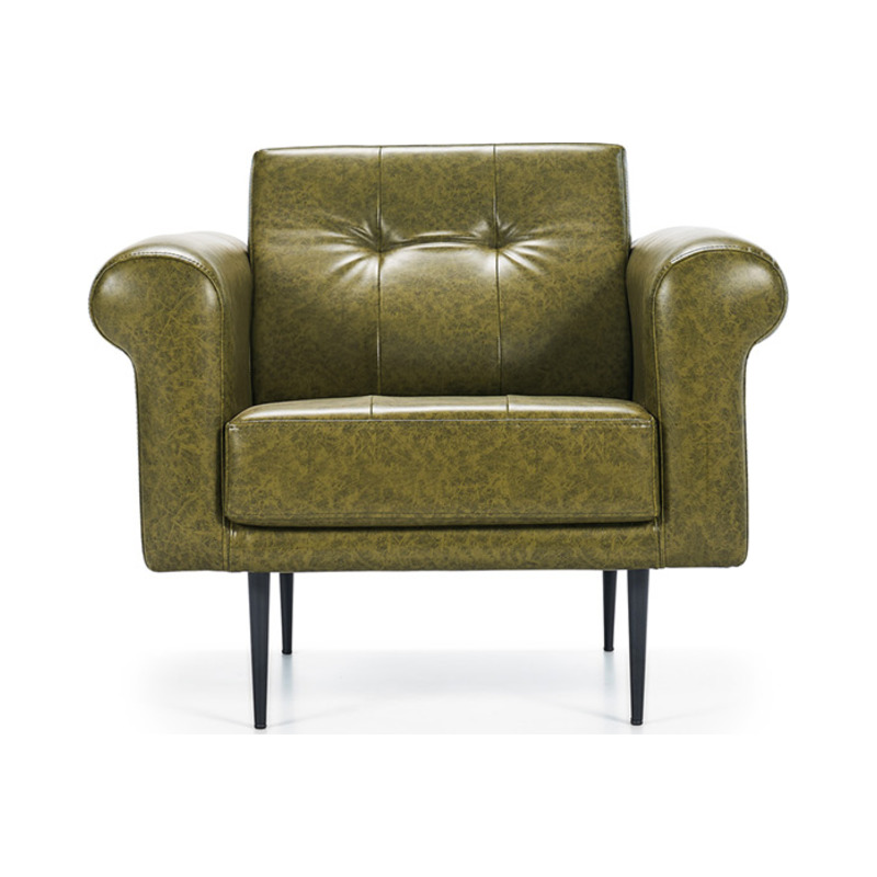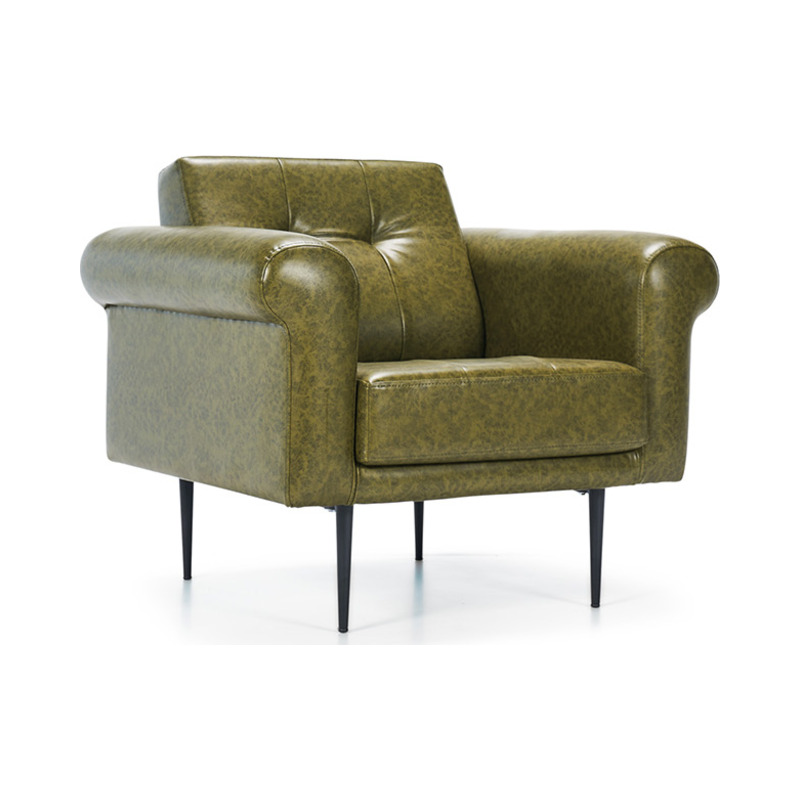 Lenget Boyalı Ayak Deri Döşemeli Yastıklı Tekli Kanepe