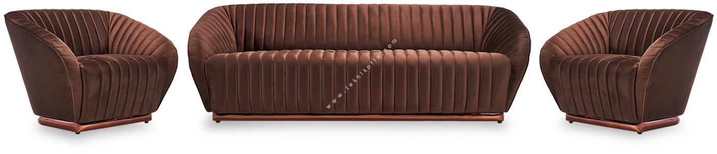 Lepold Ofis Kanepesi Takımı, ofisinizin yönetici ağırlama alanları, VIP bekleme salonları veya lüks lobilere ihtişamlı ve sofistike bir atmosfer katmak için tasarlanmıştır. Takım, üçlü kanepe ve iki adet tekli kanepeden oluşur. En belirgin özelliği, tüm oturma ünitelerinde kullanılan dikey dikişli döşeme detayıdır. Bu detay, mobilyaya zengin bir doku ve klasik bir zarafet kazandırır.