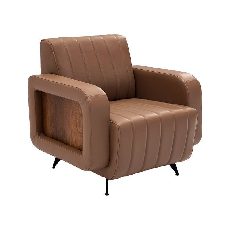 Tek kişilik kanepenin siyah boyalı metal ayakları, sağlam bir duruş sergiler ve zeminle uyumlu bir bütünlük sağlar. Kompakt boyutlarıyla oturma odalarında, ofis bekleme alanlarında, otel lobilerinde veya bireysel okuma köşelerinde rahatlıkla kullanılabilir, sınırlı alanlarda bile şık ve konforlu bir çözüm sunar. Yüksek kaliteli döşemelik malzeme, günlük kullanıma karşı dirençli olup, kolay temizlenebilirlik özellikleriyle pratik bir bakım sunar.