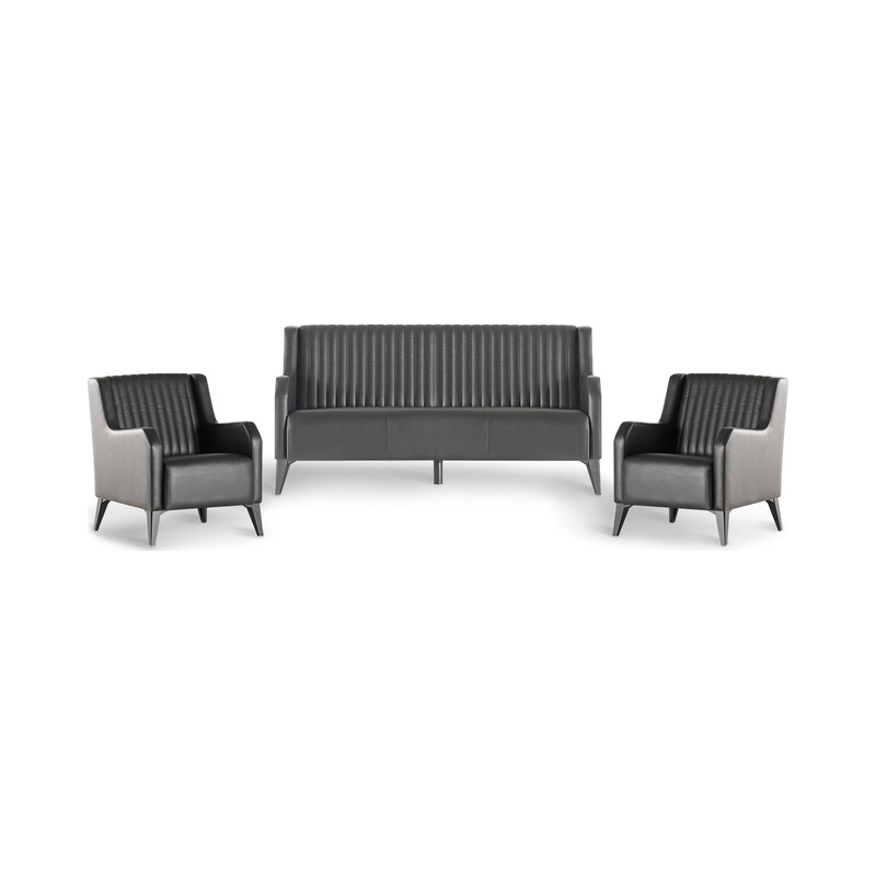 Stout Ofis Kanepesi Takımı, iki adet tekli ve bir adet üçlü kanepe ile ofis bekleme ve yönetici alanlarında uyumlu ve şık bir oturma çözümü sunar. Dikey dikiş detayları ve metal ayak tasarımı ile modern bir görünüm kazandırırken, uzun ömürlü yapısı ile güvenilir ve konforlu bir kullanım sağlar. Takım olarak kullanıldığında ofis dekorasyonuna bütünlük ve prestij katar.