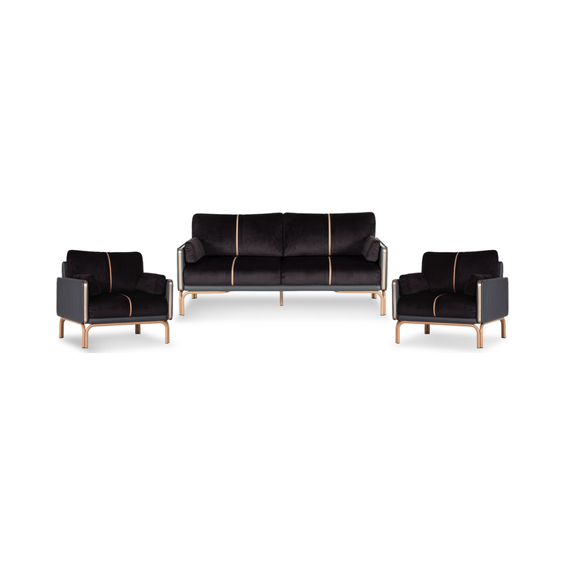 Tanox Dikiş Detaylı Kanepe Takımı, modern mekanlara sofistike bir dokunuş ve görsel bir zenginlik katmak üzere tasarlanmıştır. Koyu renk kumaşın üzerine işlenmiş belirgin dikiş çizgileri, takıma sanatsal bir derinlik ve zarif bir doku kazandırır. Altın tonlarındaki metal ayaklar, kanepelerin genel formuna hafiflik ve çağdaş bir şıklık katarken, mekana modern bir ışıltı yayar.