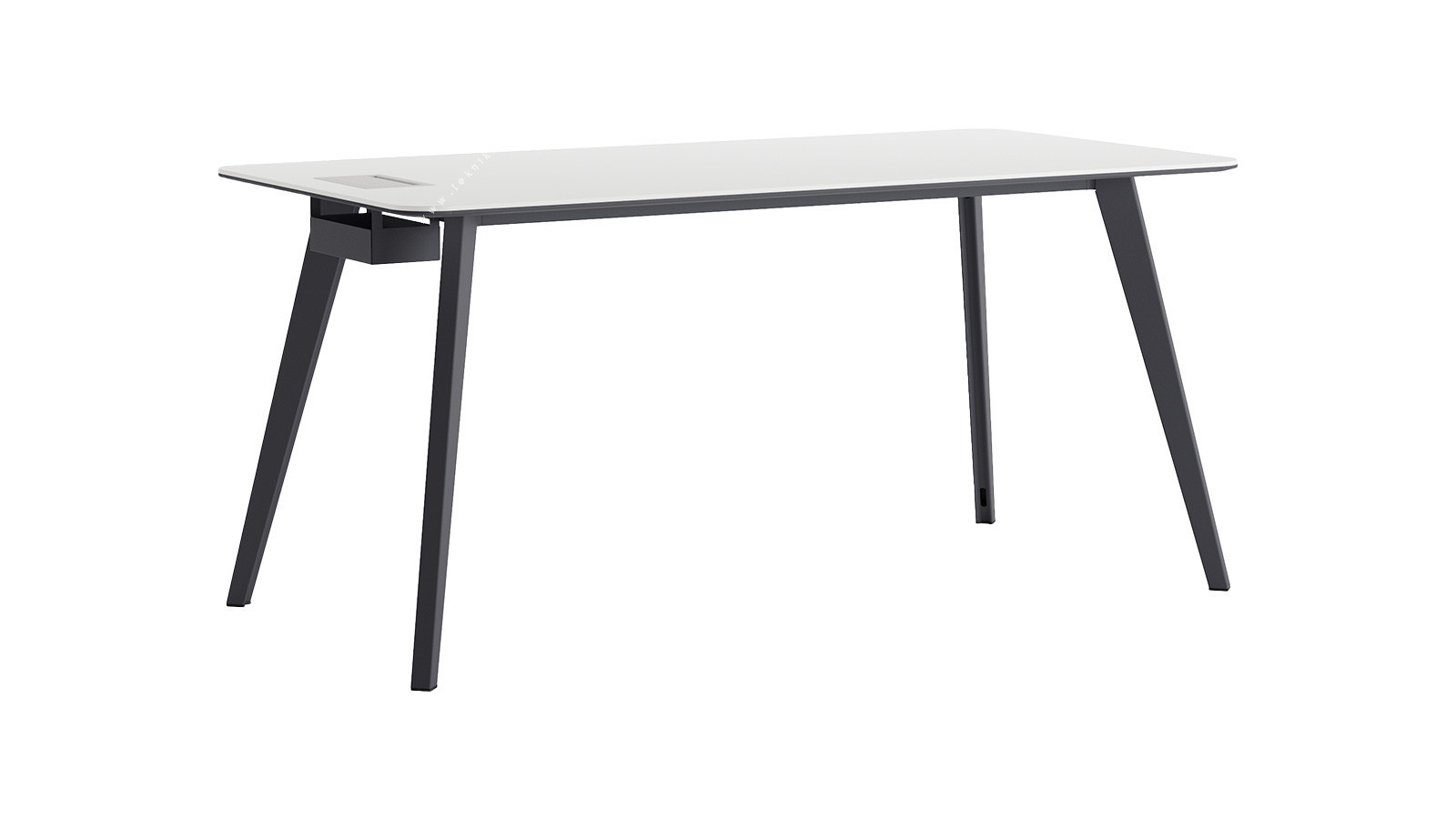 Bu ofis masasının en belirgin özelliği, ayaklarının alt kısmında yer alan eğimli ve dinamik metal detaydır. Bu eşsiz tasarım unsuru, masaya modern bir karakter kazandırırken, aynı zamanda görsel bir hafiflik ve şıklık sunar. Sağlam metal ayaklar, masaya üst düzey denge ve dayanıklılık sağlar. Geniş ve kullanışlı tablası, bilgisayar, evraklar ve diğer çalışma materyalleri için bol miktarda alan sağlayarak düzenli ve odaklanmış bir çalışma ortamı yaratır.