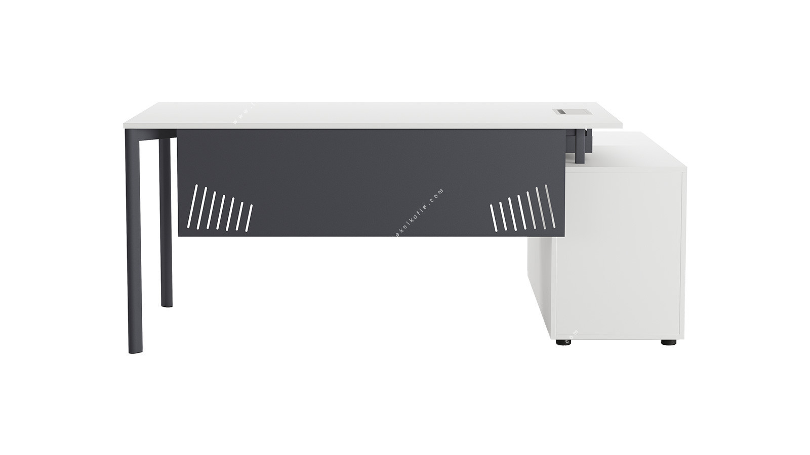 Exelis Etajerli Ofis Masası, modern tasarımı ve modüler yapısıyla ofis alanlarınıza esneklik kazandırır. Farklı boyut seçenekleri, çalışma alanınıza ve ihtiyaçlarınıza göre uyarlanabilir. Etajer kısmı sağ veya sol tarafa konumlandırılabilir ve farklı model alternatifleriyle değiştirilebilir. Masaya uygun çeşitli ön panel boyutları, hem estetik hem de fonksiyonel bir görünüm sunar. Exelis, ofis düzenine kişisel dokunuşlar eklemek isteyenler için akıllı ve şık bir çözümdür.