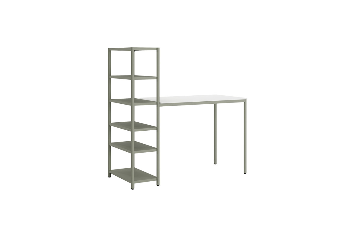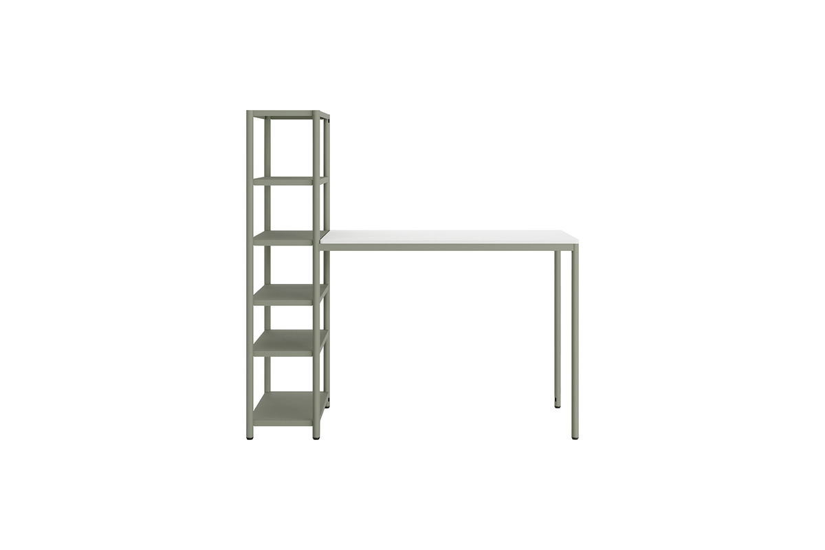 Modern çalışma alanlarına bar tipi bir dokunuş getiren Jala, yüksek formuyla hareketli bir ofis deneyimi vaat eder. Bar tabureleriyle kusursuz bir uyum yakalayan bu modül, ince metal ayakları ve entegre kitaplık yapısıyla alandan maksimum tasarruf sağlar. Kitaplığın dikey rafları, çalışma esnasında ihtiyaç duyulan materyalleri kol mesafesinde tutar. Tabla yüksekliği 107cm.